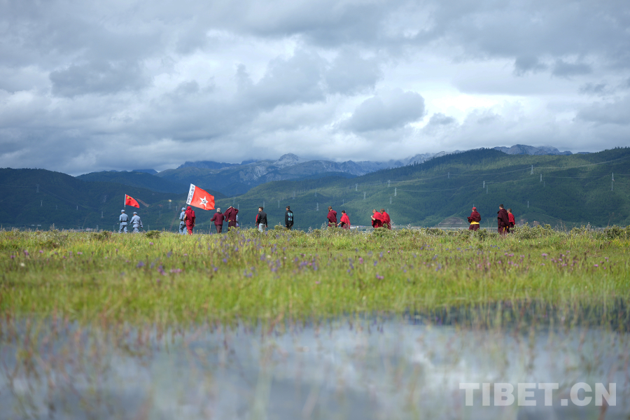 圖為“重走長征路”活動(dòng)中,迪慶州我國宗教界人士沿著先輩足跡行進(jìn)噶丹·松贊林寺供圖