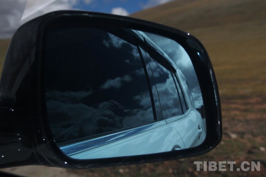 圖為車輛后視鏡中的天空 攝影:趙釗