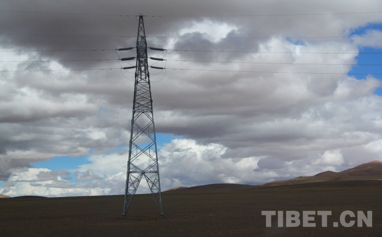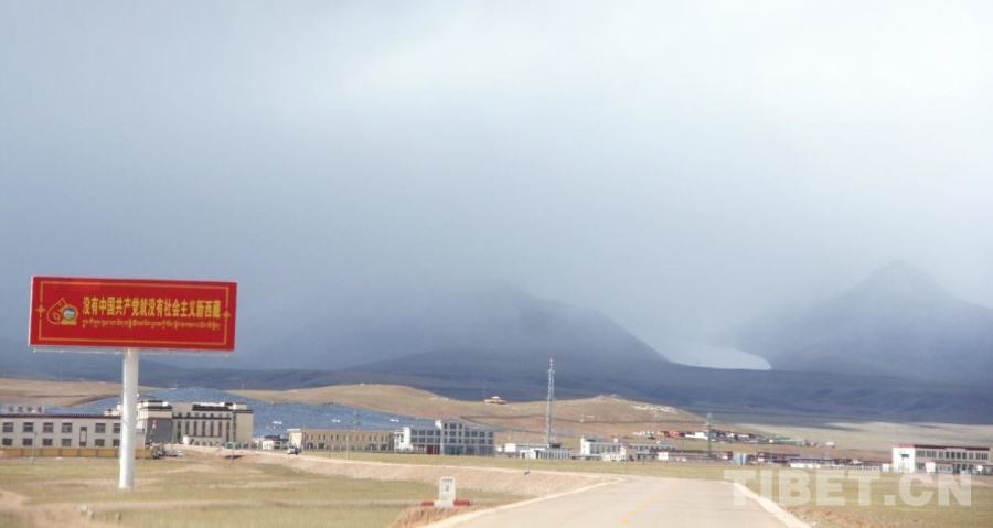 圖為快到雙湖縣城時,可以看到高架電線、光伏板、基站等基礎(chǔ)設(shè)施 攝影:趙釗
