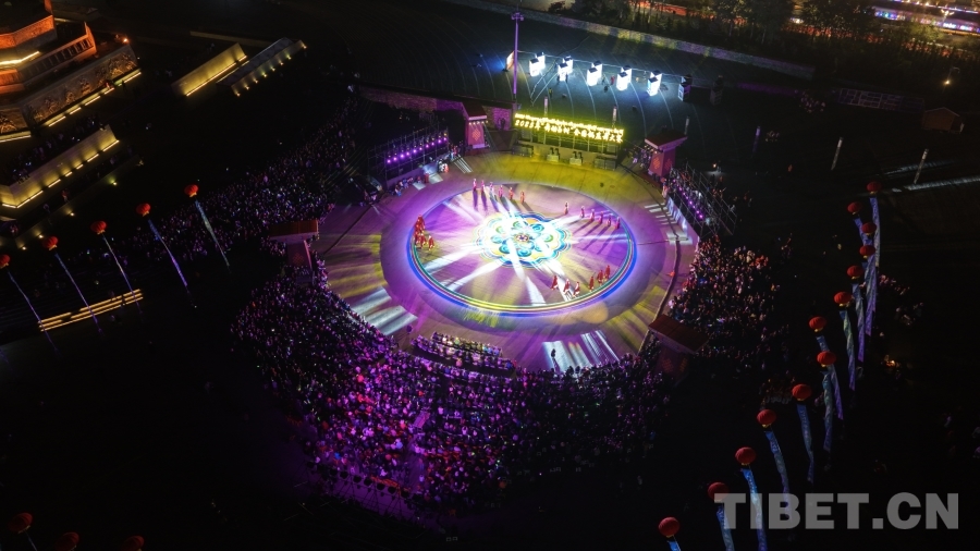 圖為航拍2025年“舞動(dòng)玉樹”全國(guó)鍋莊舞大賽現(xiàn)場(chǎng),格薩爾王廣場(chǎng)座無虛席,氣氛熱烈,為玉樹市的市民帶來了一場(chǎng)視聽盛宴
