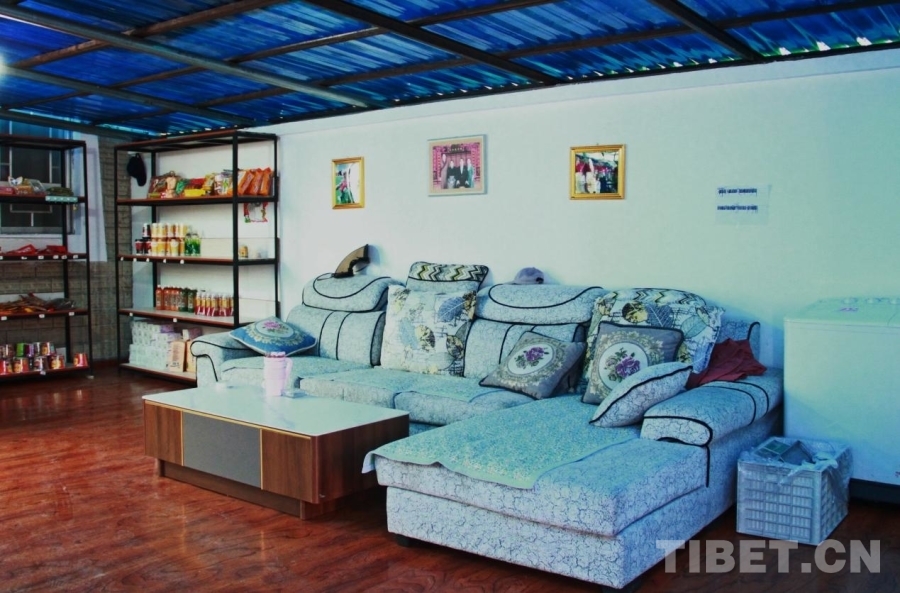 尼吉拉姆家在陜西援建邊境小康示范新居的一排排樓房中靠路邊一戶。走進(jìn)戶門,院子搭著棚頂,形成了一個(gè)大的會(huì)客室,墻邊一溜柜子,上邊擺滿飲料、生活用品等,就是一個(gè)小小的便民商店了。這只是尼吉拉姆“產(chǎn)業(yè)”中的一項(xiàng),她和丈夫羅啟明還經(jīng)營一家養(yǎng)雞場、兩人都擔(dān)任護(hù)邊員等,加上國家邊境補(bǔ)貼、草場補(bǔ)貼等,一年下來能有幾十萬元收入。