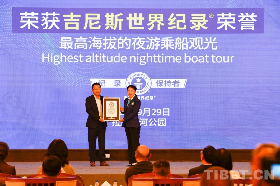 圖為“最高海拔的夜游乘船觀光”吉尼斯世界紀(jì)錄證書頒發(fā)現(xiàn)場(chǎng) 攝影:趙振宇