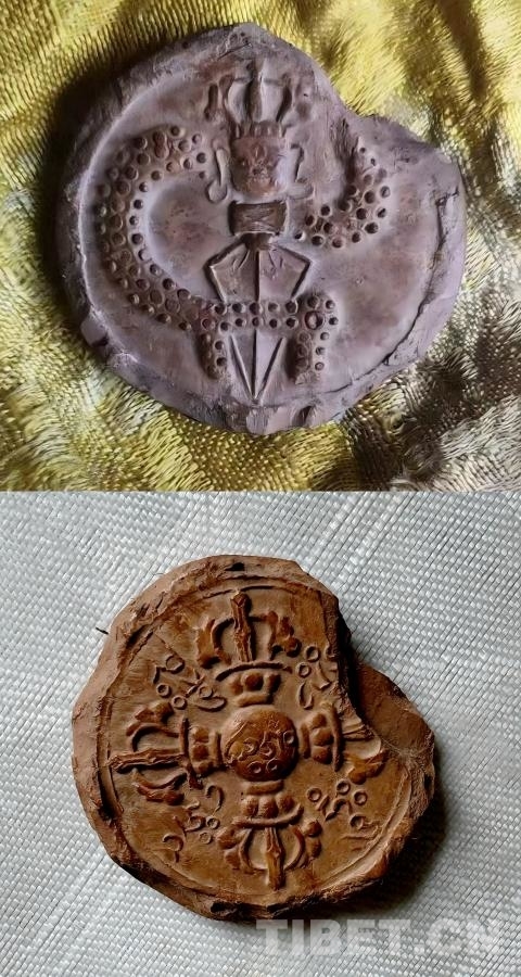 圖為1935年九世班禪命米瑪才仁返回香日德時(shí)贈(zèng)予的班欽夏擦(意為親手制作的擦擦),由扎什倫布寺特制,現(xiàn)留存稀少