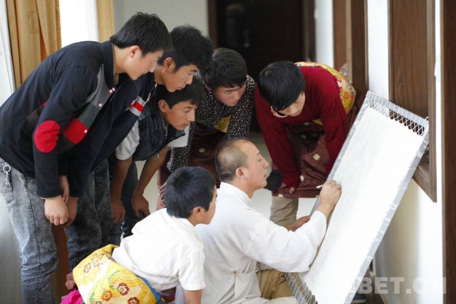 在我們的印象中,如果是一個唐卡大師,主要工作或許就是培養(yǎng)更多唐卡傳承人。然而,娘本卻并非如此。他的工作除了培養(yǎng)更多唐卡傳承人之外,還為其他事業(yè)做出了很多貢獻。他說,自己每年都會為同仁的100多戶脫貧戶發(fā)放面粉、大米、油以及現(xiàn)金等物資。在救助的過程中,他發(fā)現(xiàn)教育是一個地方、一個家庭發(fā)展的重要因素。他說,有一次他在村子里走的時候,碰見了村子里一個比他歲數(shù)大的人。通過交談,他得知對方家的孩子今年考上了大學,但家長歲數(shù)大,收入有限,兩個孩子無法同時上學。娘本聽了以后,毫不猶豫地說:“只要你讓孩子享受教育,我來資助學生?!彼€感慨地說:“我們那個年代沒有機會享受現(xiàn)在的優(yōu)質(zhì)教育,現(xiàn)在國家政策好,讓孩子享受我們國家優(yōu)質(zhì)教育成為人才是最重要的?!蹦悄觊_始,他就走上了資助學生的道路。因為在他看來,一個學生培養(yǎng)出來,能影響一個家庭或者一個村莊甚至一代人。