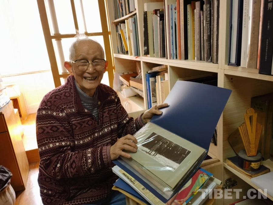 3月21日,我懷揣相冊(cè),專(zhuān)程登門(mén)拜訪丁遵新先生。來(lái)到丁先生家,一壁字畫(huà),滿屋書(shū)香。92歲高齡的先生,依舊精神矍鑠,思維敏捷。我說(shuō)明來(lái)意,攤開(kāi)相冊(cè),請(qǐng)先生辨認(rèn)這組西藏照片是否出自他手?先生凝視著照片,一時(shí)語(yǔ)塞,說(shuō):“當(dāng)年湖北團(tuán)只有我一名攝影記者,這些相片肯定是我拍的。”激動(dòng)之余,老先生進(jìn)到書(shū)房翻騰了好久,終于又找出兩張當(dāng)年的西藏照片,其中一張為罕見(jiàn)彩色印刷品,加上我母親保存的,總計(jì)12幅。