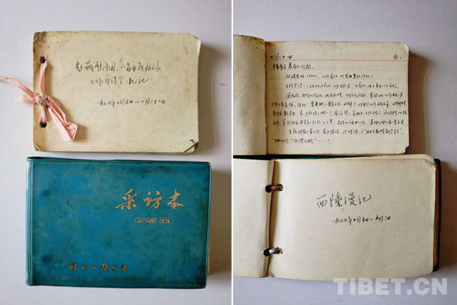 梳理完這些親手拍的片子,丁先生突然想起,他當(dāng)年赴藏寫(xiě)有日記,還保存著,我大為驚訝,本能地意識(shí)到這是極珍貴的檔案資料。先生又翻書(shū)柜,找出個(gè)小本子,上面依時(shí)間順序,密密麻麻地記載著湖北團(tuán)隊(duì)幾乎每天的活動(dòng)。真是難得一見(jiàn)的寶貝呀!經(jīng)先生同意,筆者對(duì)日記逐頁(yè)拍照,帶回家研究。