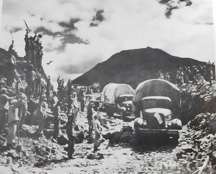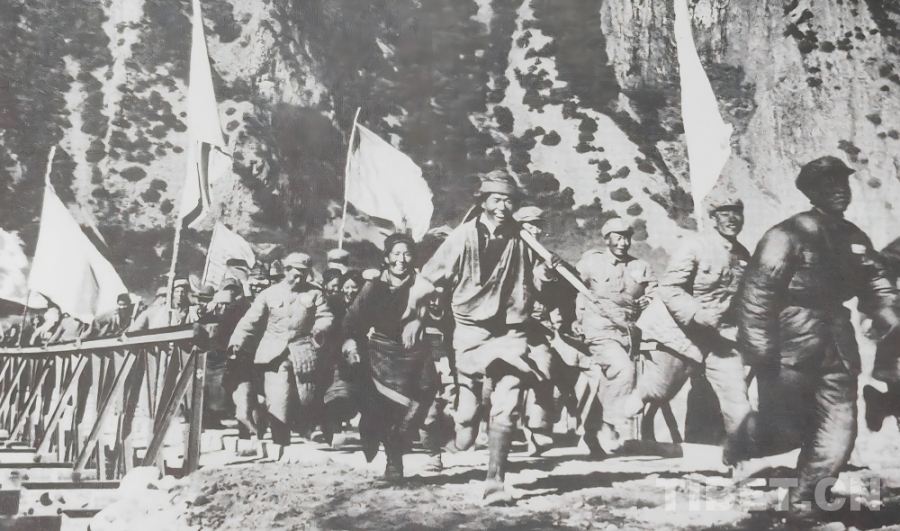 1951年10月,人民解放軍正式進(jìn)駐拉薩,隨著各項(xiàng)工作穩(wěn)步推進(jìn),局勢(shì)趨于穩(wěn)定。西藏工委、西藏軍區(qū)同西藏地方政府協(xié)商加快修建康藏公路的問(wèn)題,于1952年在拉薩成立第一工程局(后改為第一施工局),1953年1月筑路委員會(huì)成立,下設(shè)西線筑路指揮部。進(jìn)藏部隊(duì)、地方干部與各族民工(西線筑路大軍)從拉薩出發(fā),先打通拉薩河南岸至墨竹工卡的山路,再頂著米拉山口的暴風(fēng)雪鋪筑路基,一點(diǎn)點(diǎn)將公路向著巴河的方向延伸。兩支筑路大軍隔著雪山峽谷,卻以同樣的堅(jiān)韌,在高原上刻下屬于中國(guó)人的英勇無(wú)畏!