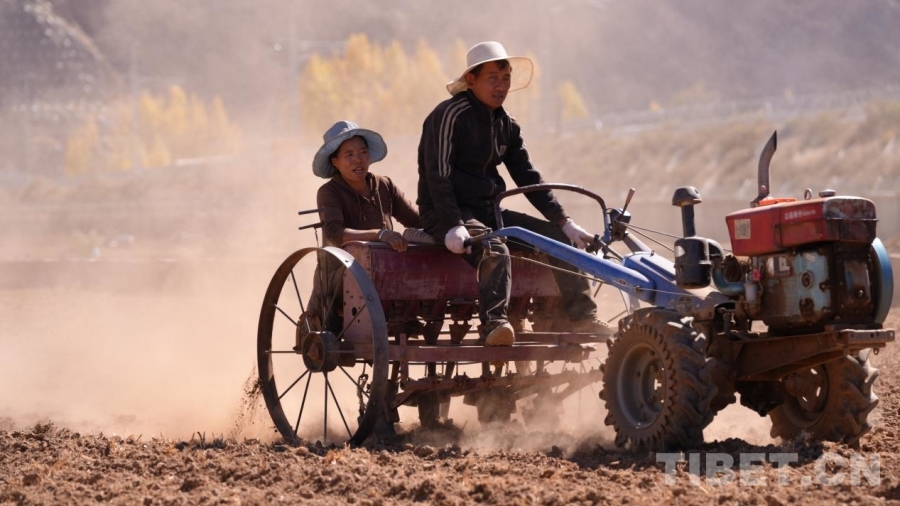 中國西藏網(wǎng)訊 十月的西藏山南市加查縣,雅魯藏布江畔秋意正濃。10月21日,記者在冷達(dá)鄉(xiāng)嘎瑪吉塘村看到,田間地頭處處是繁忙的冬播景象:拖拉機(jī)轟鳴著往來穿梭,鐵犁翻起濕潤的新土,泥土清香撲面而來;村民們手執(zhí)傳統(tǒng)農(nóng)具,沿著整齊的田壟緩緩前行,彎腰播撒下一粒粒飽滿的冬小麥種子。據(jù)當(dāng)?shù)卮迕窠榻B,嘎瑪吉塘村有著悠久的冬播傳統(tǒng)。每年10月下旬,當(dāng)?shù)乇銜?huì)開啟冬播工作,主要種植冬小麥。這些種子在土地中越冬,于來年7月迎來豐收。緊接著在8月,村民們又會(huì)馬不停蹄地開始新一輪播種,主要為牲畜種植飼料,形成了一年兩熟、土地不休的良性循環(huán)農(nóng)業(yè)生產(chǎn)模式。(中國西藏網(wǎng) 記者/次旦拉姆)