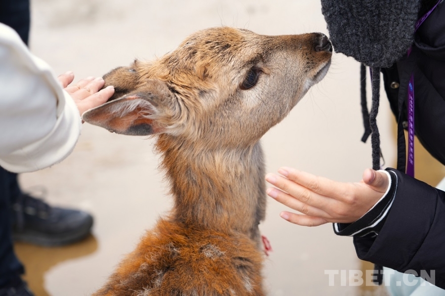 圖為養(yǎng)殖場內(nèi)的網(wǎng)紅小鹿“次仁” 攝影:張藝彤