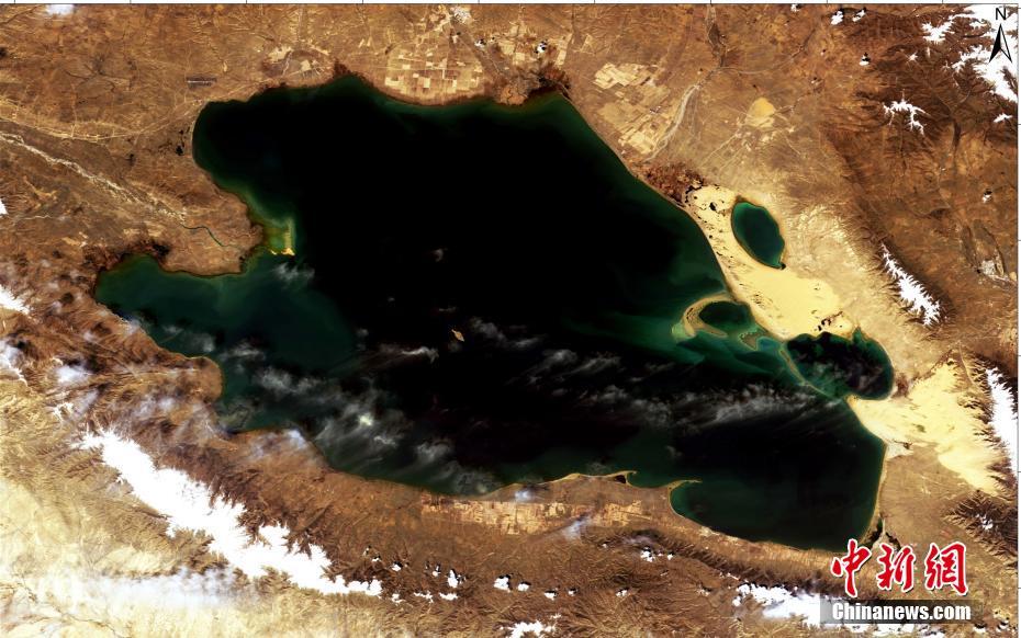 圖為2019年5月13日遙感監(jiān)測(cè)的青海湖水體深綠,草色枯黃。青海省地質(zhì)調(diào)查院 供圖