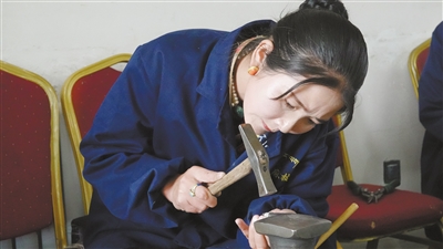 正在制作金銀首飾的女技工。洪玉杰 攝