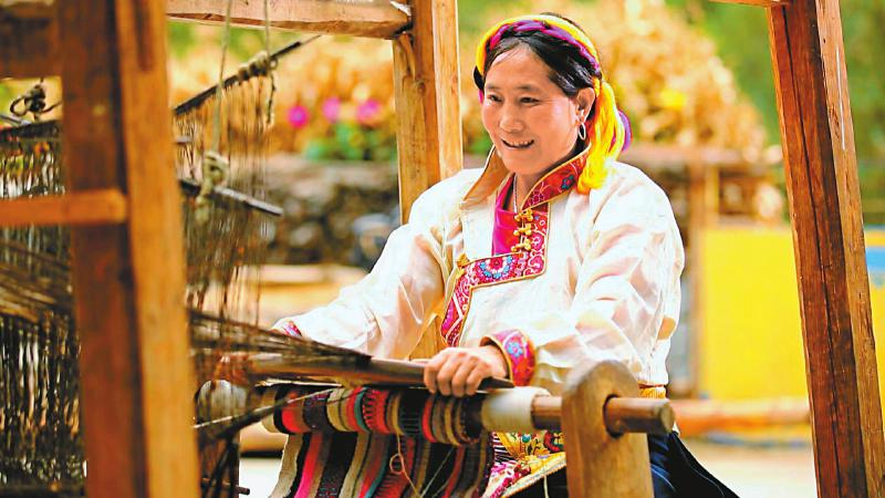 編織藏毯的湯古木雅藏族群眾。(九龍縣融媒體中心供圖)