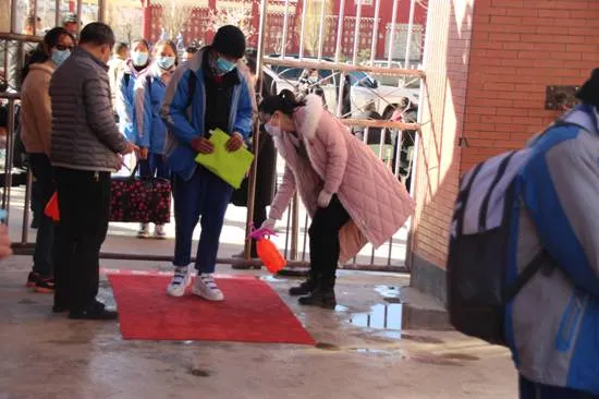 早晨八點三十分,學(xué)生陸續(xù)到校,學(xué)校各部門按照前期演練的程序有序組織學(xué)生進校。班主任在學(xué)生整隊等待區(qū)整隊、學(xué)生遞交返校監(jiān)控資料、鞋底消毒、手部消毒、領(lǐng)取新口罩、回收舊口罩、體溫檢測、洗手、入班再檢測體溫、宣講新型冠狀病毒感染肺炎防控知識,各個環(huán)節(jié)緊湊有序。185名高三學(xué)生沒有出現(xiàn)任何身體不適和體溫異常情況,實現(xiàn)了有序安全返校。