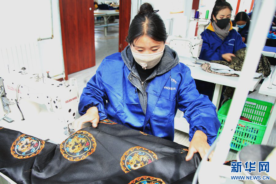 繡娘們正在縫制藏袍。新華網(wǎng) 馬洪婷 攝