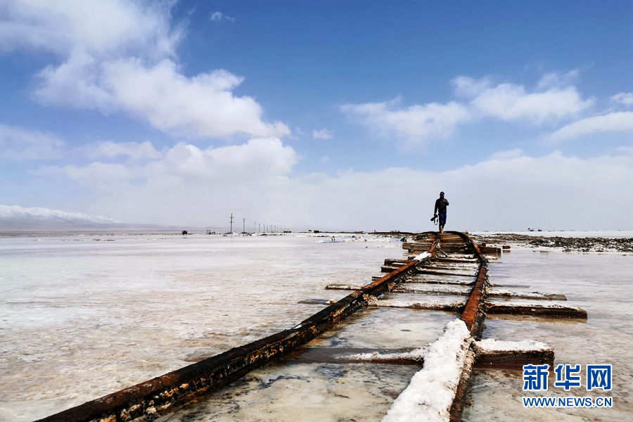 和風(fēng)爽,碧空無垠。行走在茶卡鹽湖景區(qū),腳下的鹽粒咯吱作響,湛藍(lán)的天空下,無際的“白?!敝械褂爸荒ㄉ钏{(lán);南來北往的游客揮舞著紗巾,在鏡頭前喜笑顏開……