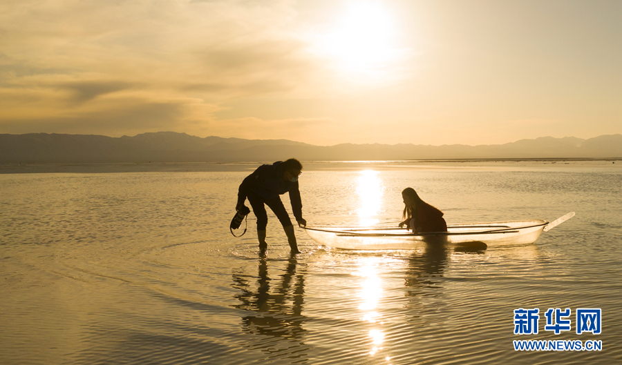 夕陽下的茶卡鹽湖。新華網(wǎng) 潘彬彬攝