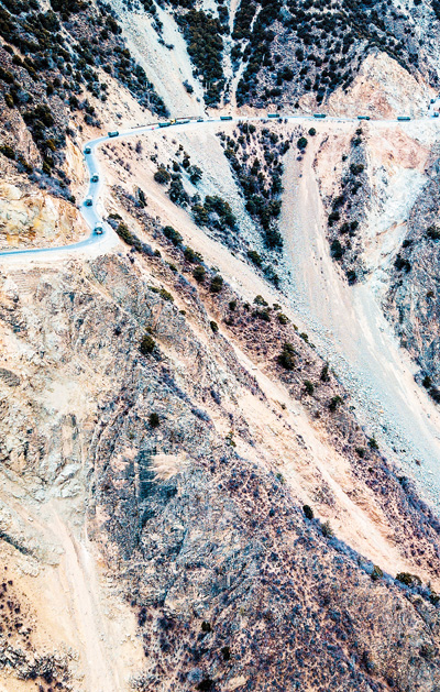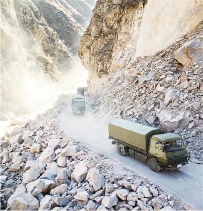 執(zhí)行任務(wù)時(shí)通過(guò)滾石區(qū)的車(chē)隊(duì)。沈奧 攝
