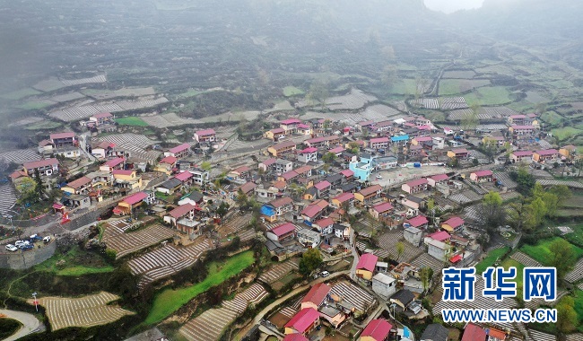 汽車從縣城出發(fā),沿山路蜿蜒而上,一直“往云深處走”。行車近兩個(gè)小時(shí),穿越山中層層繚繞薄霧,眼前逐漸顯現(xiàn)一片開闊山塬——一座座色彩鮮明的藏式房屋錯(cuò)落有致,鑲嵌在青山云霧之間,宛若一幅秀美的畫卷。