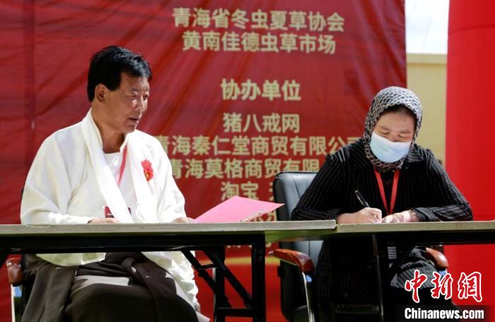 圖為企業(yè)家與供貨商在現(xiàn)場簽定供銷合同。青海省冬蟲夏草協(xié)會(huì)供圖