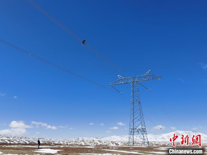 圖為5月13日,國(guó)網(wǎng)青海檢修公司輸電運(yùn)檢人員在海拔五千米的風(fēng)火山地區(qū)對(duì)“電力天路”±400千伏柴拉直流線(xiàn)路進(jìn)行空中走線(xiàn)巡檢,查找并消除線(xiàn)路缺陷。謝莉蓉 攝