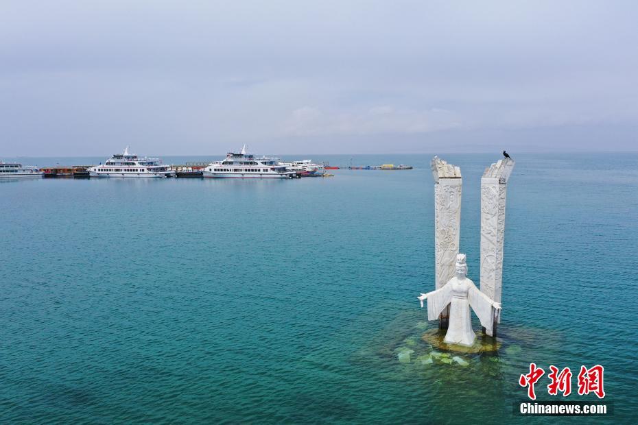 5月19日,航拍被碧綠湖水包圍的青海湖二郎劍景區(qū)碼頭。初夏時(shí)節(jié),青海省海南藏族自治州青海湖畔萬(wàn)物復(fù)蘇,碧水藍(lán)天,宛如油畫(huà)。中新社記者 馬銘言 攝