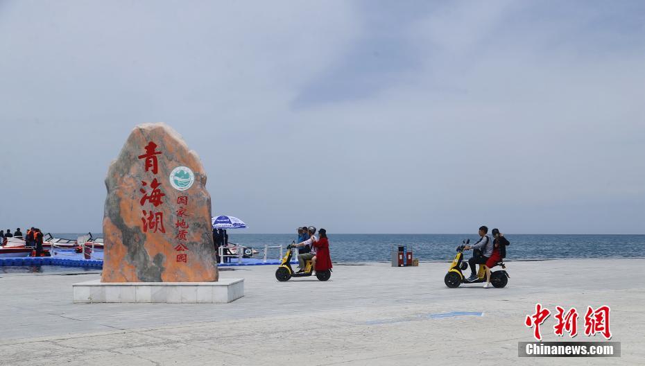 5月19日,游客騎著電動(dòng)車(chē)在青海湖二郎劍景區(qū)內(nèi)游玩。當(dāng)日是中國(guó)旅游日,游客在青海省海南藏族自治州青海湖二郎劍景區(qū)內(nèi)觀湖、與水鳥(niǎo)互動(dòng)、感受初夏青海湖的海天一色之美。中新社記者 馬銘言 攝