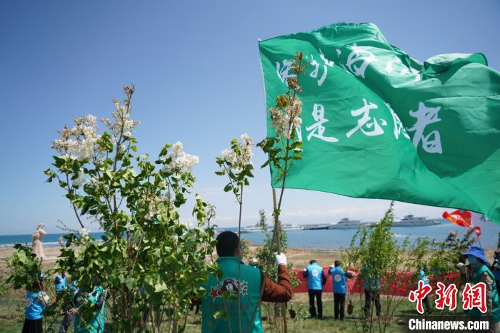 22日上午,200余名志愿者們?cè)谇嗪:戏N植了丁香、榆葉梅和水栒子等適應(yīng)青藏高原高寒氣候的耐寒、耐鹽堿樹種共300多棵。