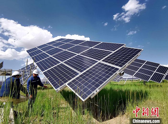 光伏發(fā)電企業(yè)不僅幫這片青藏高原腹地的昔日“草原”重新煥發(fā)生機(jī),綠色清潔能源也從園區(qū)源源不斷向外輸送。