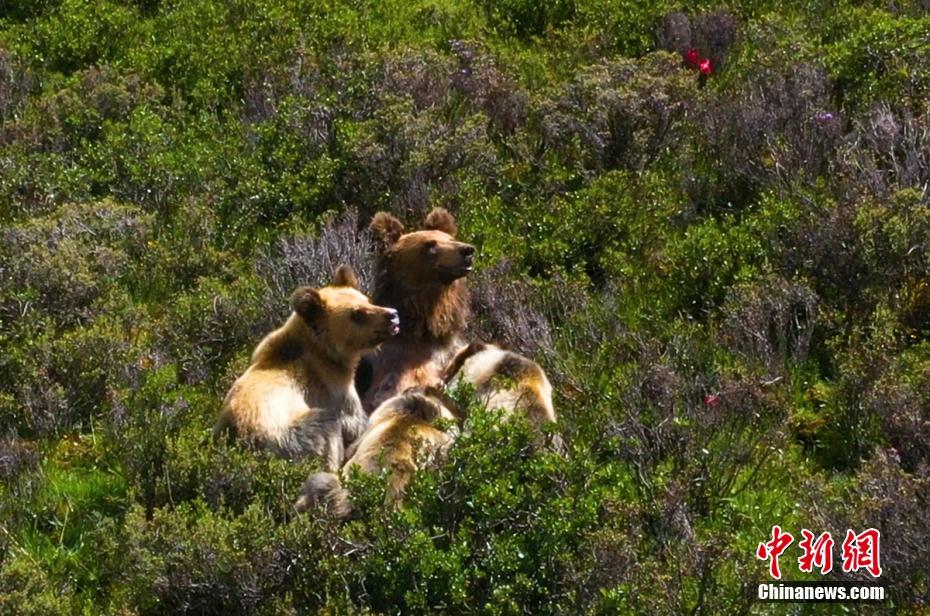 7月13日下午,記者下鄉(xiāng)采訪途中,在海拔4500米的四川省甘孜藏族自治州石渠縣蒙宜鎮(zhèn)蒙格村附近一處水草豐茂的山坡處拍攝時(shí),偶然發(fā)現(xiàn)一只棕熊媽媽曬著陽(yáng)光浴給三只小熊喂奶場(chǎng)景,棕熊媽媽喂奶結(jié)束后領(lǐng)著小熊寶寶們緩慢走向大山深處。