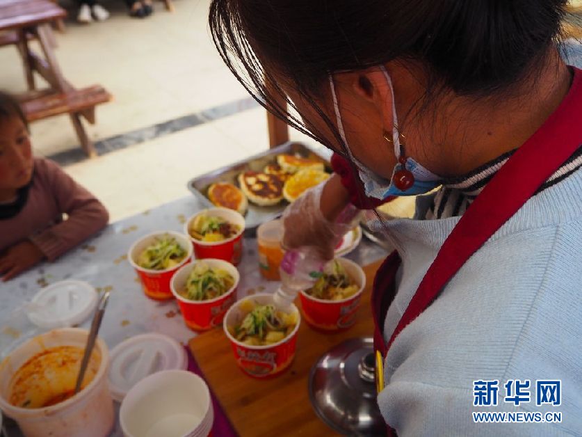 青海省黃南藏族自治州尖扎縣昂拉鄉(xiāng)德吉村村民在美食廣場(chǎng)制作特色小吃(5月27日攝)。新華社記者 白瑪央措 攝