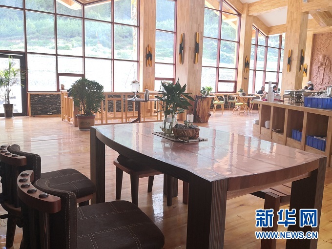 傍晚時(shí)分走進(jìn)高吉村,錯(cuò)落有致的民宿散落山間,落地窗透出暖黃色的燈光。房間里藏式床鋪與原生態(tài)家具相映成趣,靠窗的榻上擺放著茶幾、茶具、綠植,一覽無(wú)余的窗外夕陽(yáng)半落、云飛鳥(niǎo)散。游客接待中心也一改傳統(tǒng)樣式,樓上是純木質(zhì)、開(kāi)放式餐廳,樓下是小橋流水、曲徑通幽的水景,游客們?nèi)齼蓛傻暮戎Х?,享受著?shī)意的人生。
