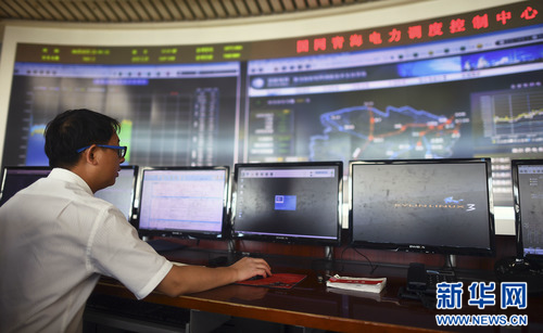 國(guó)家電網(wǎng)青海電力公司調(diào)度控制中心一名工作人員在查看發(fā)電實(shí)時(shí)數(shù)據(jù)(2019年6月12日攝)。新華社記者 張宏祥 攝