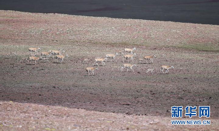 7月7日在可可西里卓乃湖區(qū)域拍攝的藏羚羊。新華社記者 薛玉斌 攝