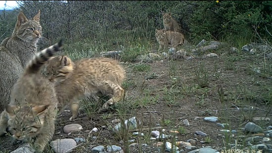 荒漠貓為中國(guó)所有貓科動(dòng)物中僅有的特有物種,《世界自然保護(hù)聯(lián)盟》(IUCN)瀕危(EN)物種,荒漠貓?jiān)谌珖?guó)數(shù)量稀少,分布密度低,對(duì)其生活史所知甚少。其通常棲息于海拔2500米至5000米干燥的高山與亞高山灌叢、戈壁、草甸生境中。自祁連山國(guó)家公園青海省管理局啟動(dòng)荒漠貓專(zhuān)項(xiàng)調(diào)查以來(lái),在國(guó)家公園范圍內(nèi)頻繁記錄到荒漠貓活動(dòng)畫(huà)面,并且記錄到一只雌性荒漠貓成功撫育4只幼崽的畫(huà)面,監(jiān)測(cè)到5只荒漠貓同框的罕見(jiàn)畫(huà)面。祁連山國(guó)家公園青海片區(qū)自開(kāi)展貓科動(dòng)物專(zhuān)項(xiàng)調(diào)查以來(lái),記錄到5只雪豹同框、6只兔猻同框的罕見(jiàn)畫(huà)面后又一次記錄到貓科動(dòng)物多只同框的畫(huà)面。
