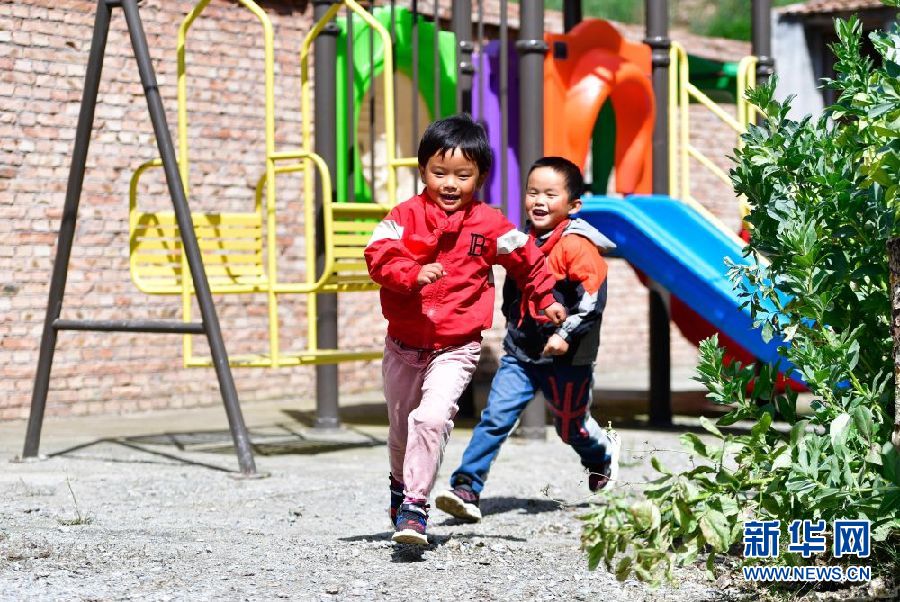 8月31日,在來(lái)塘村學(xué)校,孩子們?cè)谡n間玩耍。新華社記者 張龍 攝