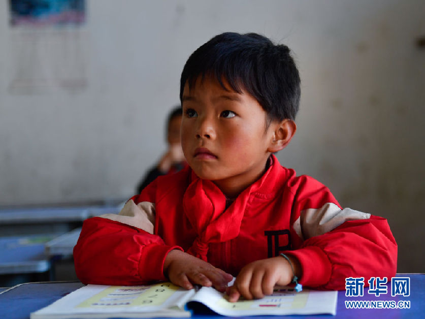 8月31日,在來(lái)塘村學(xué)校,一年級(jí)學(xué)生馬良在學(xué)習(xí)。新華社記者 張龍 攝