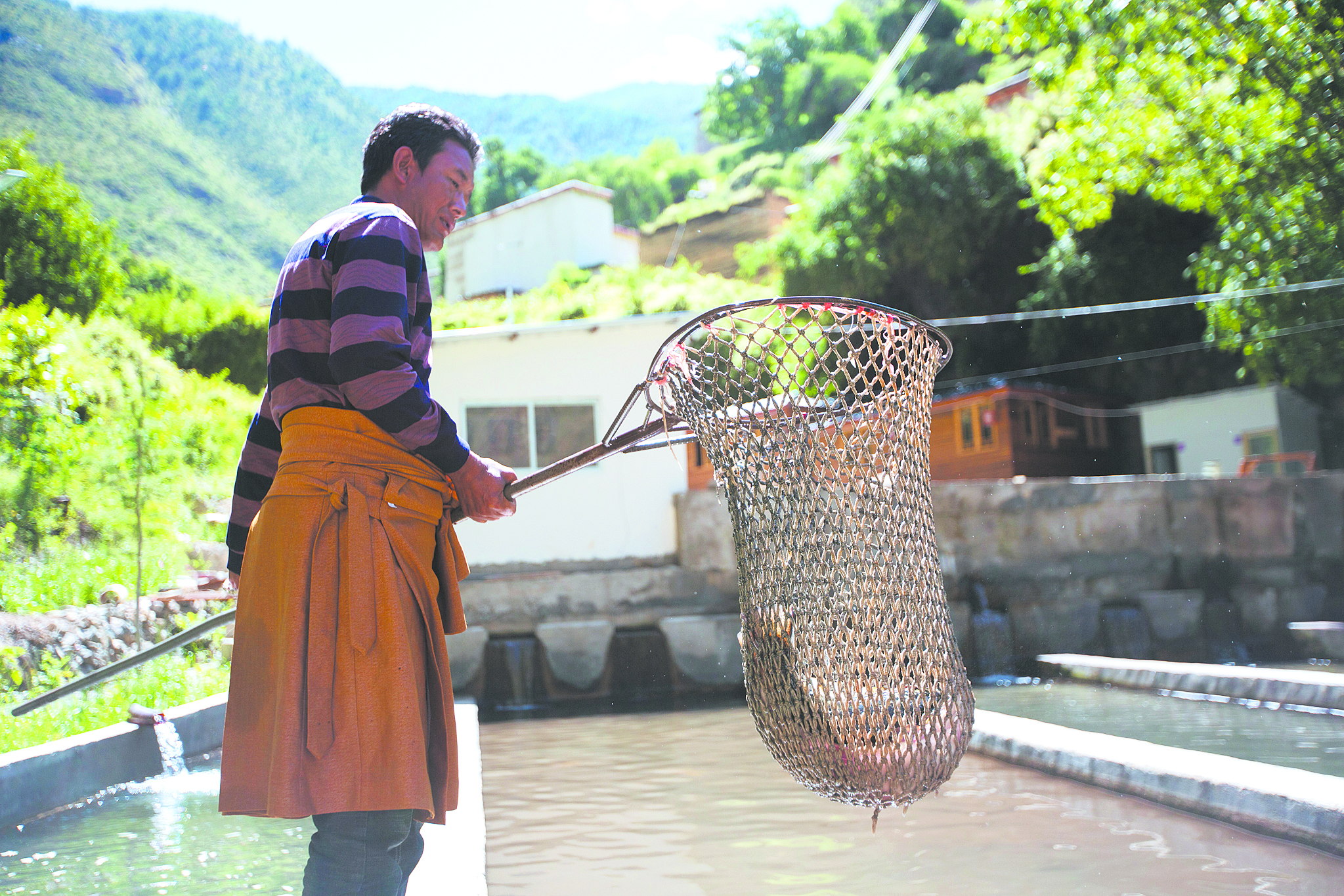 彭錯(cuò)打撈養(yǎng)殖的冷水魚。錢虹辰 攝