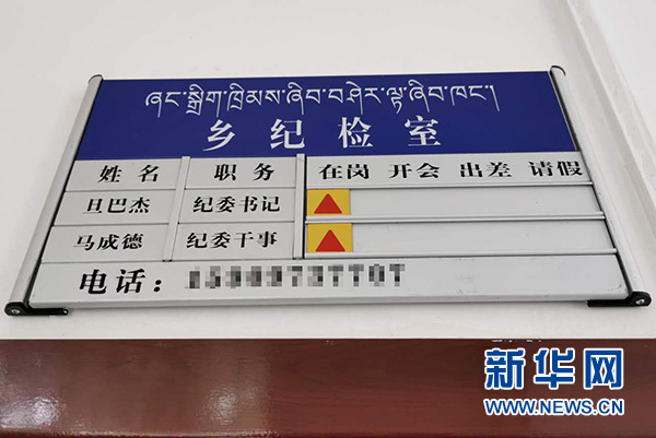 青海省黃南藏族自治州同仁市曲庫(kù)乎鄉(xiāng)設(shè)置的“干部去向告知牌”。新華網(wǎng) 王志艷 攝