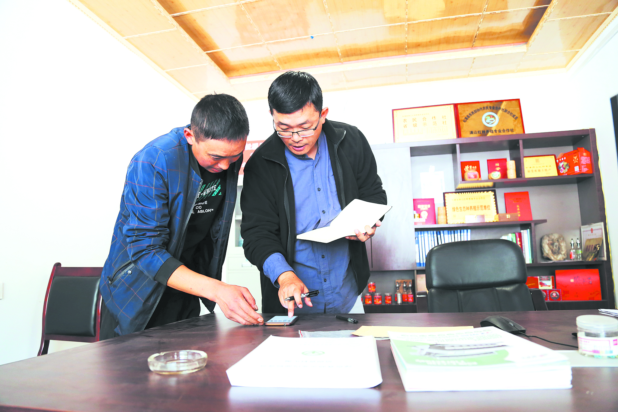 地里花椒采摘忙,村里花椒合作社也是一片繁忙,機(jī)器干燥、抽真空包裝、裝進(jìn)產(chǎn)品盒、貼好地址準(zhǔn)備發(fā)貨。在采訪中,盧洪有手機(jī)微信“叮咚”一聲,他立馬看了一下,“有人給你發(fā)紅包?”“紅包算啥子哦。今年有三成貨是通過網(wǎng)上銷售,每天,合作社工作人員都會把訂單信息發(fā)到合作社成員的微信群里?!泵鎸τ浾叩恼{(diào)侃,盧洪有顯得很自信。這樣的自信來自確實鼓起來的荷包。