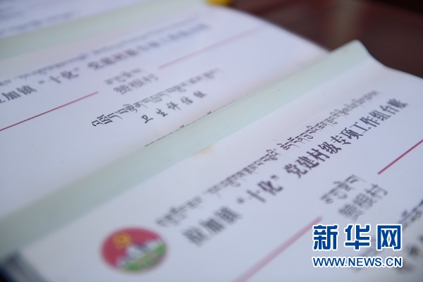 瑪沁縣拉加鎮(zhèn)贊根村“十化”黨建專項(xiàng)工作組臺(tái)帳。新華網(wǎng) 潘彬彬 攝