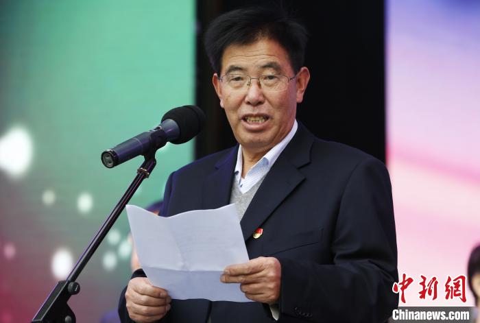 圖為中國(guó)新聞社青海分社社長(zhǎng)胡鐘藝主持啟動(dòng)儀式。馬銘言 攝
