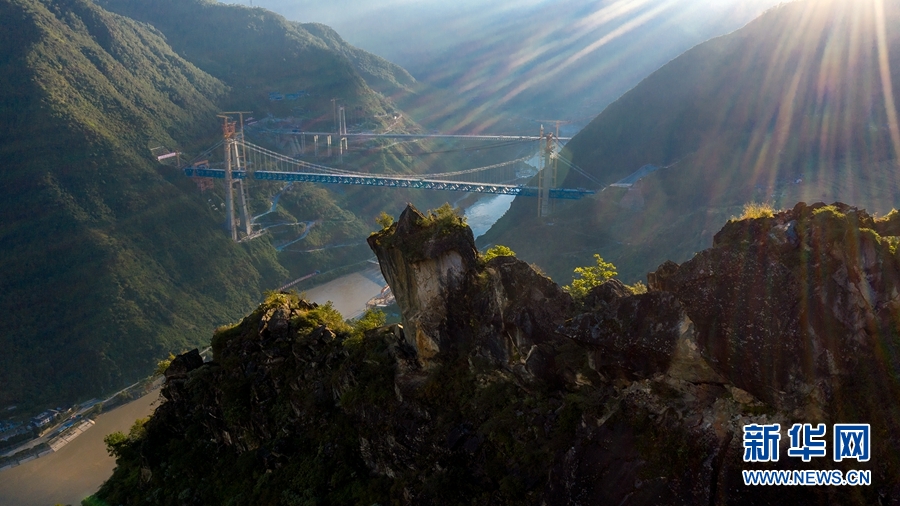 世界首座大跨度鐵路懸索橋麗香鐵路金沙江特大橋合龍