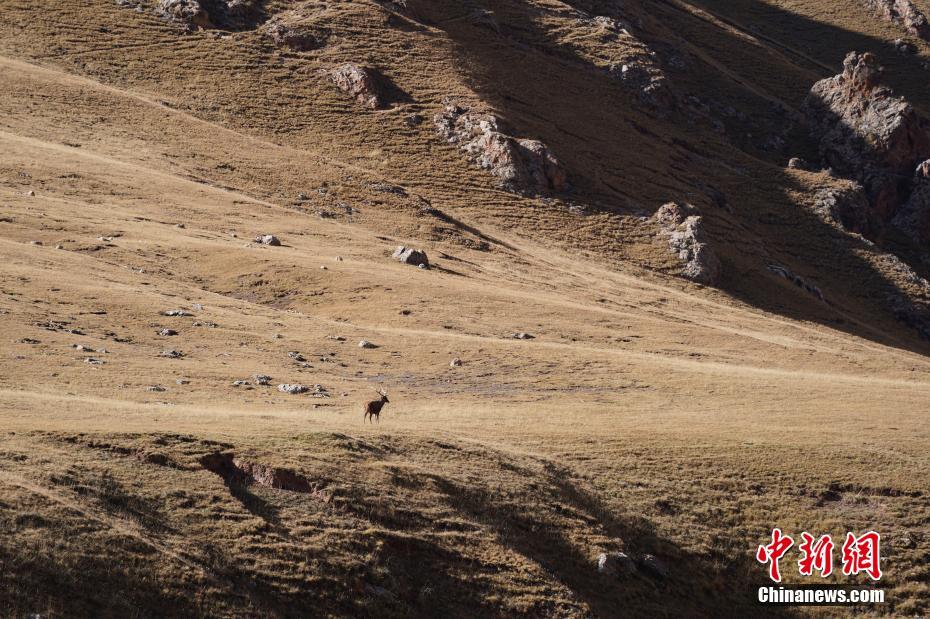 10月15日,位于青海省雜多縣扎青鄉(xiāng)的瀾滄江源頭如油畫般的風(fēng)景。圖為國家二級(jí)保護(hù)動(dòng)物馬鹿。中新社記者 蘇丹 攝