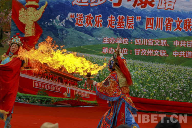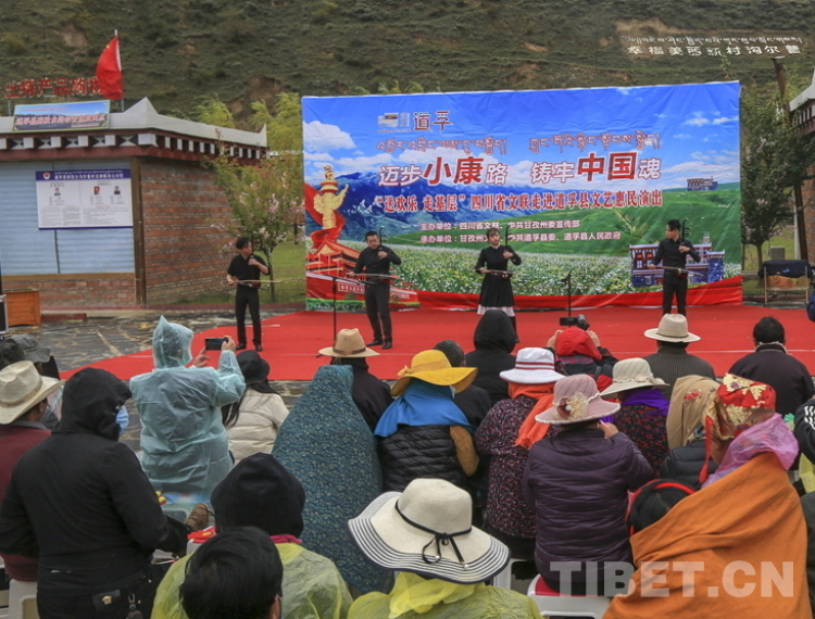 中國(guó)西藏網(wǎng)訊 10月20日,由四川省文聯(lián)、甘孜州委宣傳部主辦的“邁步小康路,鑄牢中國(guó)魂”送歡樂下基層活動(dòng)在四川省甘孜藏族自治州道孚縣麻孜鄉(xiāng)溝爾普村舉行。