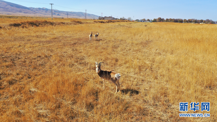 青海湖國家級自然保護區(qū)管理局南岸保護站,一群普氏原羚正在悠閑漫步。新華網(wǎng) 汪要強 攝