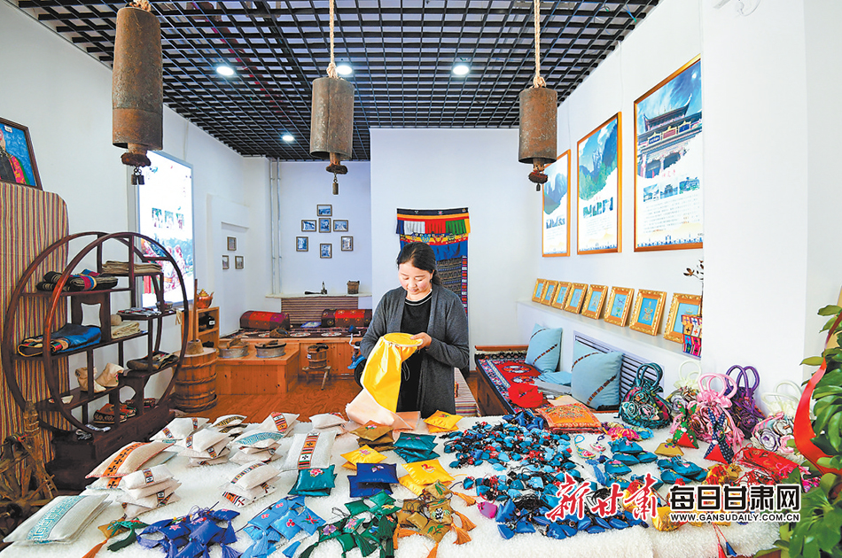 位于卓尼縣商業(yè)街的德琴巧手民俗文化旅游發(fā)展貿(mào)易有限公司,帶動許多婦女實現(xiàn)家門口就業(yè)。