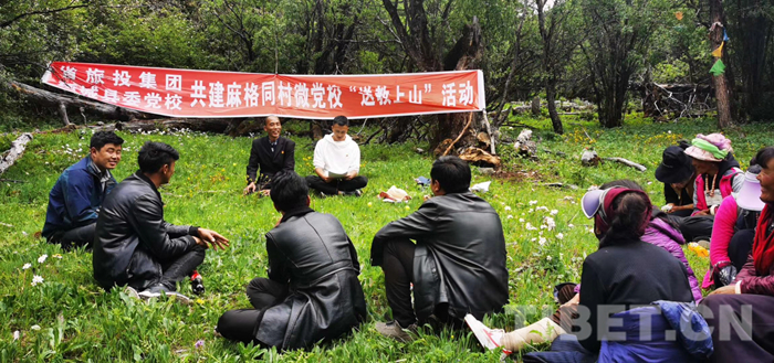 圖為四川旅投集團(tuán)、稻城縣委黨校共建麻格同村微黨?!八徒痰较x(chóng)草山”活動(dòng)