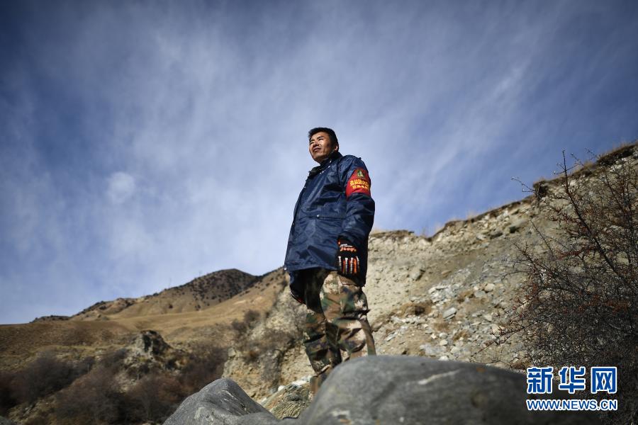 12月8日,祁連山國家公園扎麻什管護站生態(tài)管護員索安拉什旦在巡護途中。新華社記者 張宏祥 攝