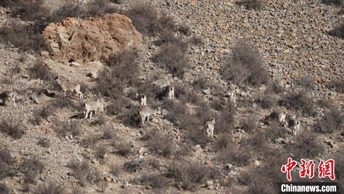 12月中旬,在地處祁連山區(qū)的甘肅肅南縣祁豐藏族鄉(xiāng)吊達(dá)坂附近,肅南縣融媒體中心記者拍攝到數(shù)群巖羊在公路旁的山坡上悠閑覓食。據(jù)目測,此次拍到公路旁覓食巖羊約有200多只。巖羊是國家二級重點保護(hù)野生動物,體型中等,形態(tài)介于野山羊與野綿羊之間。巖羊具有極高的攀巖技術(shù),可以在絕壁上自由跳躍,一跳可達(dá)二三米,因此也被稱為“巖壁上的精靈”。近年來,肅南縣深入推進(jìn)祁連山國家級自然保護(hù)區(qū)生態(tài)文明建設(shè),加強(qiáng)保護(hù)區(qū)管理,實施退牧還草等措施,當(dāng)?shù)厣鷳B(tài)環(huán)境逐步改善,民眾保護(hù)意識不斷增強(qiáng),使得當(dāng)?shù)匾吧鷦游飻?shù)量逐年增加。