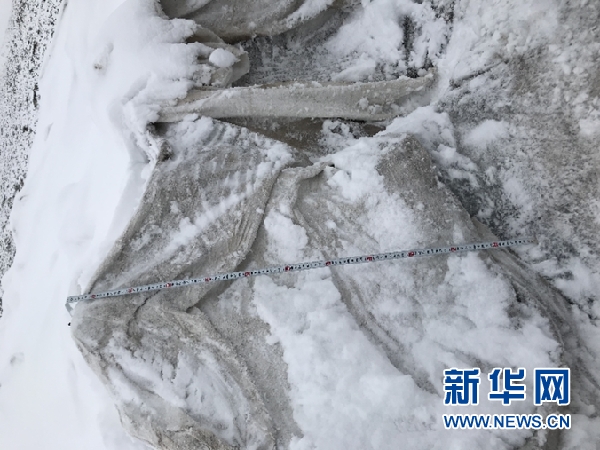 王飛騰團隊發(fā)現(xiàn),“蓋被子”區(qū)域的冰體消融速度減緩?!啊w被子’的地方比不‘蓋被子’的地方冰的厚度高了一米,這高出來的一米就是‘蓋被子’的效果?!蓖躏w騰介紹。